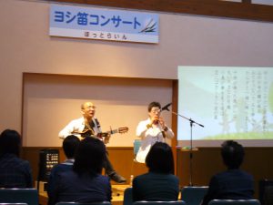 「ヨシ笛コンサート」の」お知らせ 日時:11月16日(日) 午前10時~11時30分 内容:琵琶湖のヨシから作られるヨシ笛とギターが奏でる 音色や懐かしい名曲をお楽しみください。 鑑賞は、無料です。お誘いあわせご来館ください。