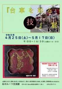 内容:堆黒の技巧で名をはせた湊屋村次郎など名工の作品を展示いたします。
